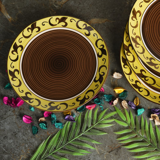 Caffeine Ceramic Handmade Stoneware Brown & Yellow Leaf quarter plate 7”(Set of 4 Dishwasher & Microwave Safe )