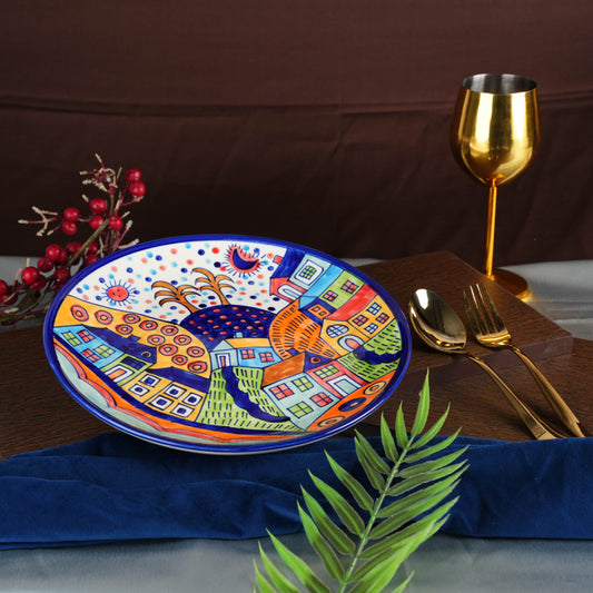 Caffeine Ceramic Handmade Stoneware Family Hut Quarter Plate 7” (Set of 4 Dishwasher & Microwave safe )