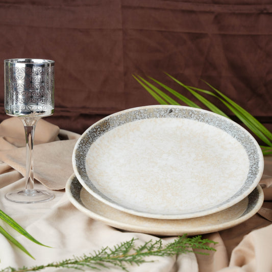 Caffeine Ceramic Handmade Stoneware Cream Patta Quarter plate 7”(Set of 2 Dishwasher & Microwave Safe )