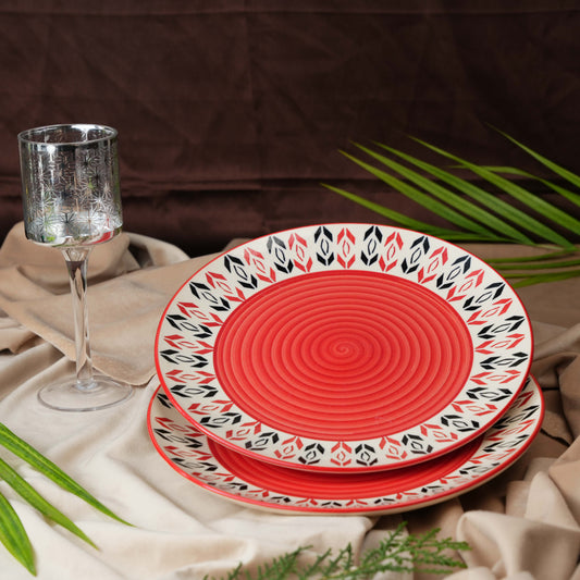 Caffeine Ceramic Handmade Stoneware Red Mughal Quarter Plate 7”(Set of 4 Dishwasher & Microwave Safe )