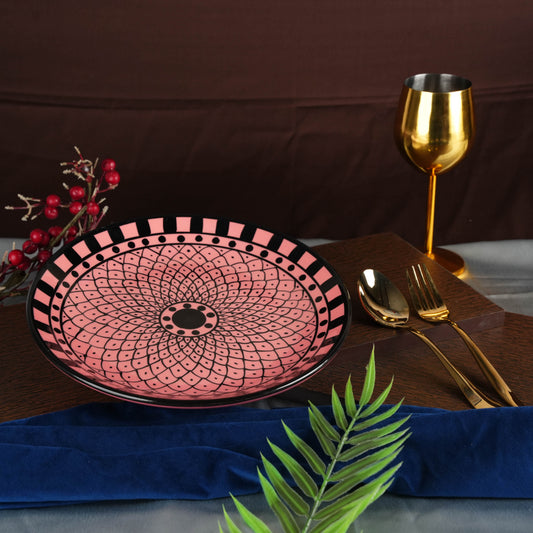 Caffeine Ceramic Handmade pink Flora Pattern quarter plate 7”(Set of 2)
