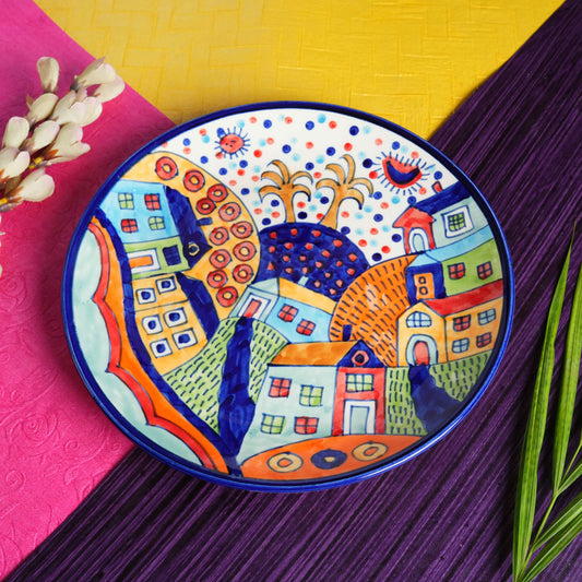 Caffeine Ceramic Handmade Stoneware Family Hut Design Quarter Plate 7” (Set of 2) Dishwasher & Microwave Safe