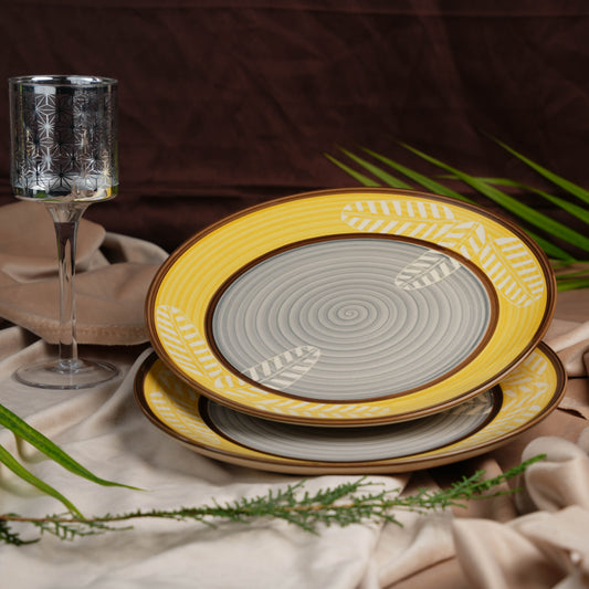 Caffeine Ceramic Handmade Stoneware Yellow Leaf Quarter Plate 7” (Set of 2 Dishwasher & Microwave safe )