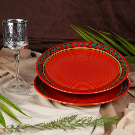 Caffeine Ceramic Handmade Stoneware Half Red & Black Bamboo Quarter Plate 7”(Set of 2 Dishwasher & Microwave Safe )