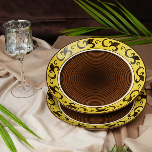 Caffeine Ceramic Handmade Stoneware Brown & Yellow Leaf Quarter Plate 7” (Set of 2 Dishwasher & Microwave safe)