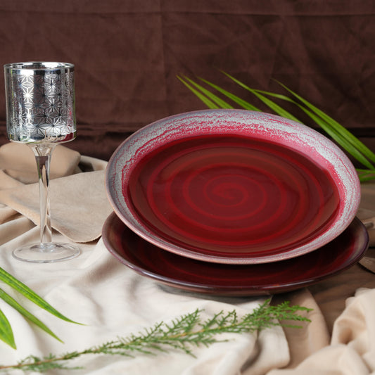 Caffeine Ceramic Handmade Stoneware Maroon Studio Quarter Plate 7"(Set of 2 Microwave & Dishwasher Safe)