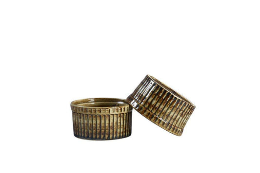 Caffeine Ceramic Handmade Mustard Brown Ramekins Bowls (Set of 2)