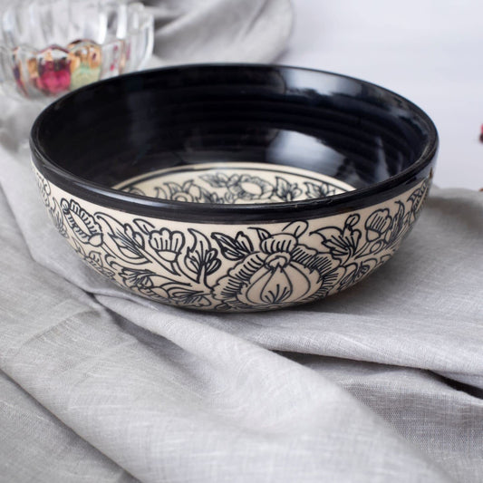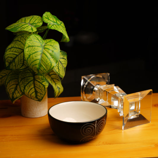 Caffeine Premium Ceramic Handmade Black Doodle Serving Bowl (Set of 4)