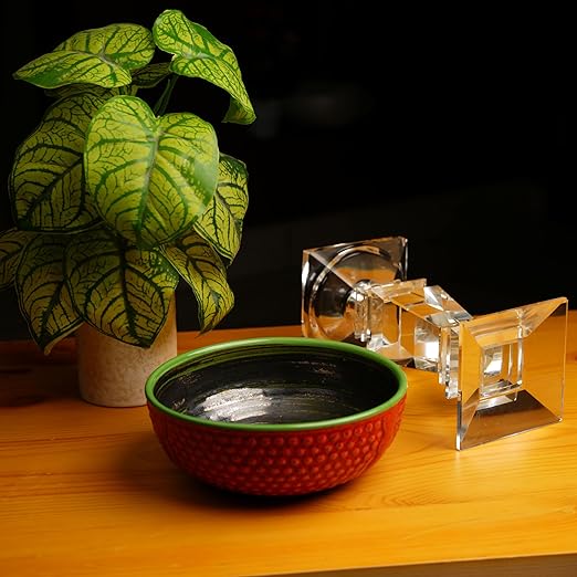 Caffeine Handmade Ceramic Stoneware Red & Green Bubble Serving Bowl (Set of 3)