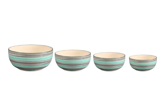 Caffeine Ceramic Handmade Sea green & Grey Serving Bowl (Set of 4)