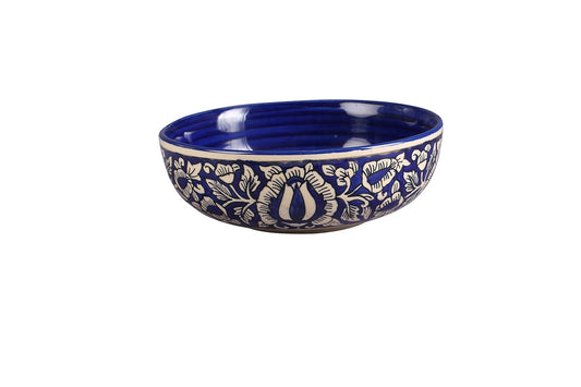 Caffeine Ceramic Handmade Blue mughal Serving Bowl 8.5 inch (Set of 1) Large