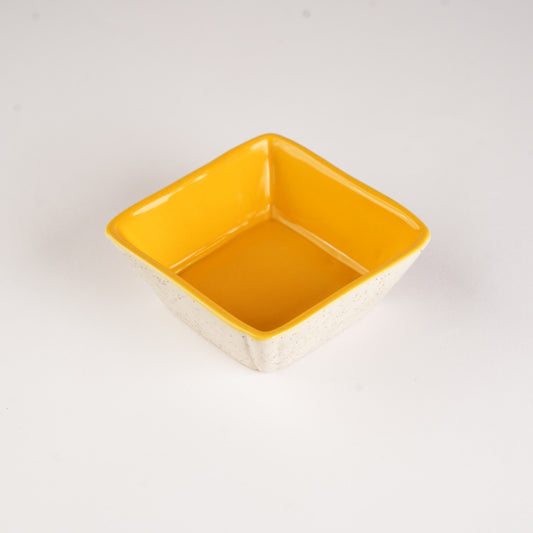 Caffeine Ceramic Handmade Matte Cream & Glossy Yellow Serving Bowl (Set of 4)