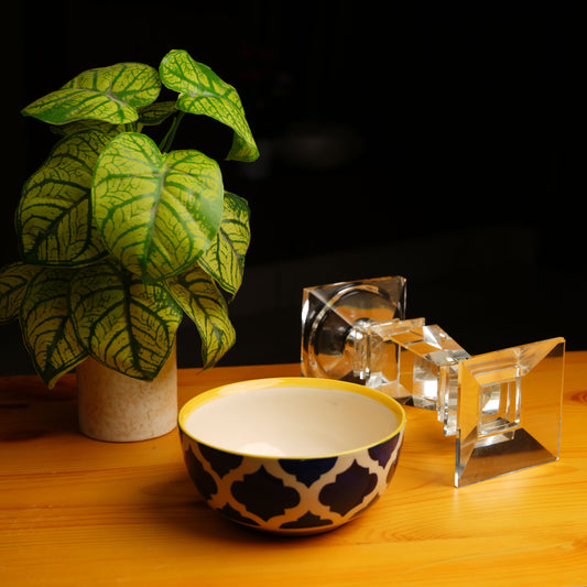 Caffeine Ceramic Handmade Blue Mughal Serving Bowl 6.5" (set of 1) small