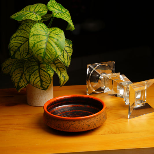 Caffeine Ceramic Handmade Half Red & Black Serving Bowl (Set of 3)