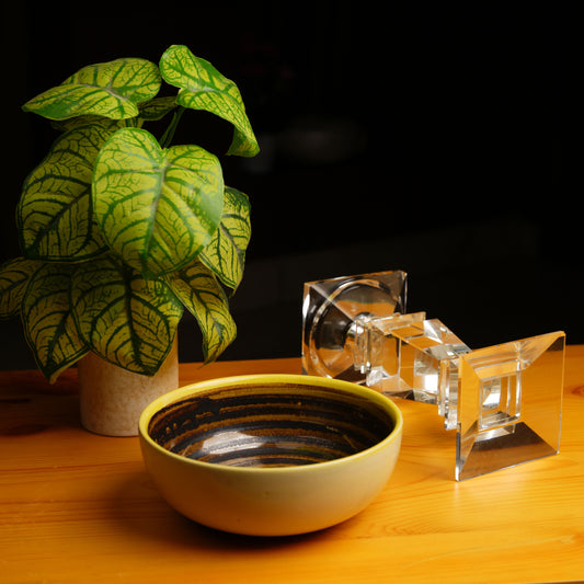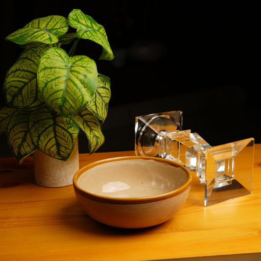 Caffeine Premium Ceramic Handmade Cream & Brown with Yellow Rim Serving Bowl (Set of 3)