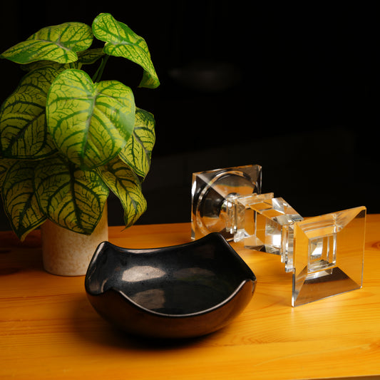 Caffeine Premium Ceramic Handmade Black Studio Serving Bowl (Set of 3)