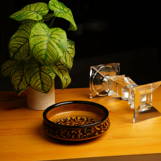 Caffeine Ceramic Handmade Brown Sehra Handi design Serving Bowl (Set of 3)