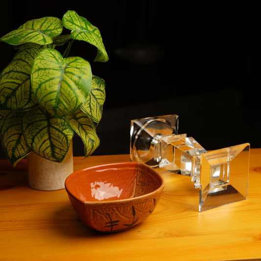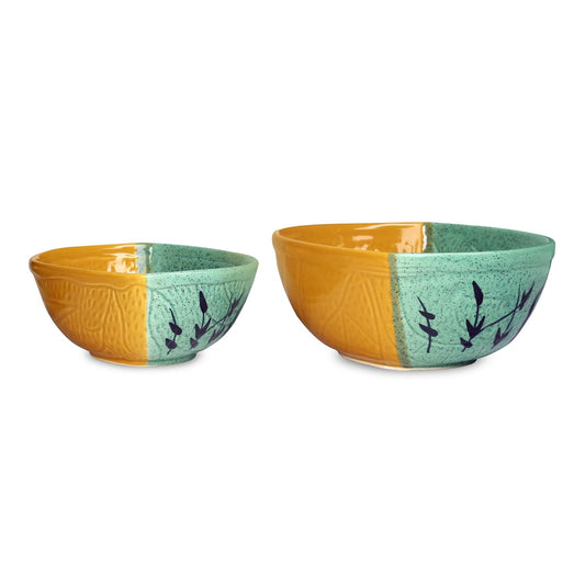 Caffeine Ceramic Handmade Brown and Mustard Leaf Serving Bowl (Set of 3)