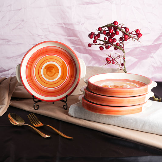 Caffeine Ceramic Stoneware Handmade Orange Illusion Sizzler Tray 8 Inch (Set of 4)
