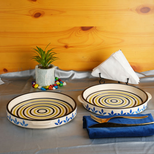 Caffeine Ceramic Stoneware Handmade Blue Boota Sizzler Tray 9.5 Inch (Set of 2)