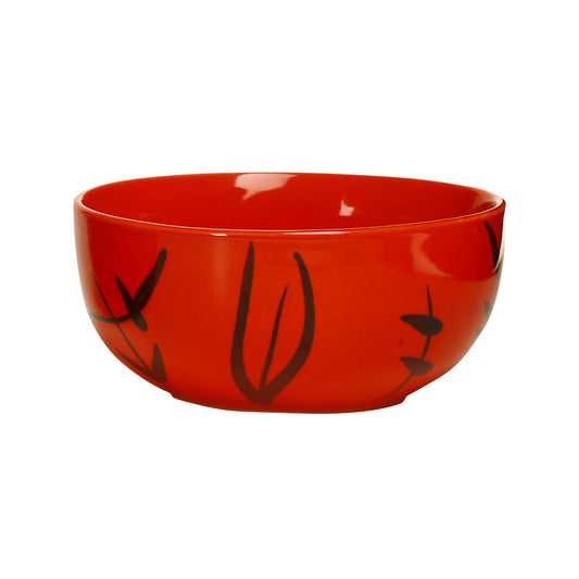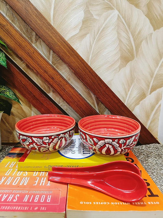 Caffeine Ceramic Handmade Red Bamboo Soup Bowl with Spoon (Set of 2)