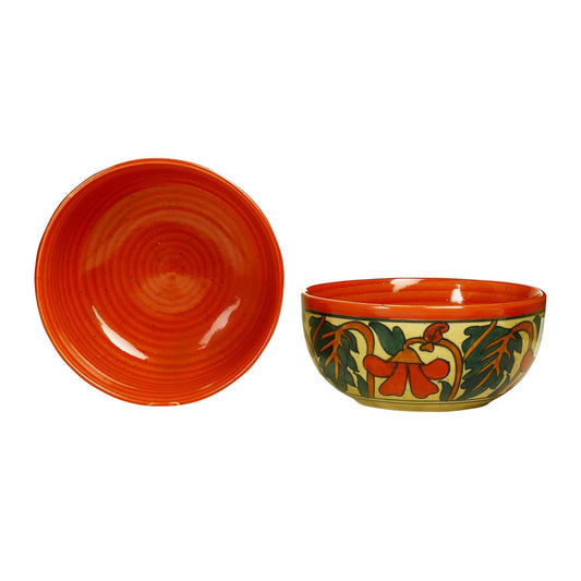 Caffeine Ceramic Handmade red mughal Soup Bowl (Set of 2)