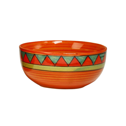 Caffeine Ceramic Handmade Orange and Green Triangles Design Soup Bowls with spoon set of 6
