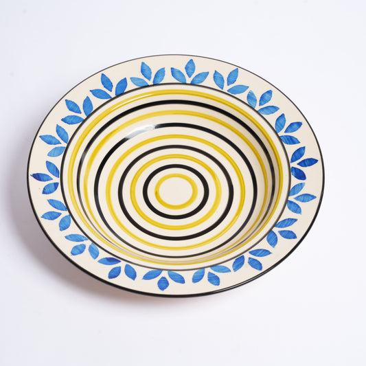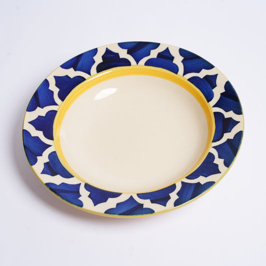 Caffeine Ceramic Handmade Stoneware Blue Umrao Pattern 9" Soup Plates/Maggie Plate/Pasta Plate/Macaroni Plate (Set of 2 Microwave & Dishwasher Safe)