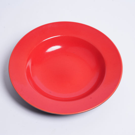 Caffeine Ceramic Handmade Stoneware Red Boota Soup Plates/Pasta Plate/Maggie Plate/Macaroni Plate 9 inch (Set of 2 Dishwasher & Microwave Safe)