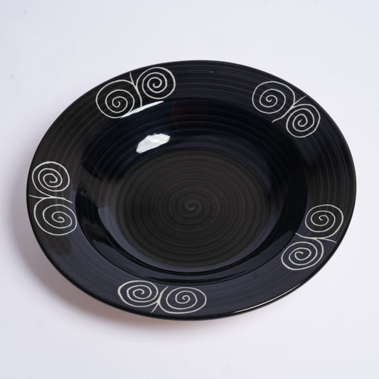 Caffeine Ceramic Handmade Stoneware Black Doodle Soup Plate/Maggie Plate/Pasta Plate/Macaroni Plate 9" (Set of 2 Microwave & Dishwasher Safe)