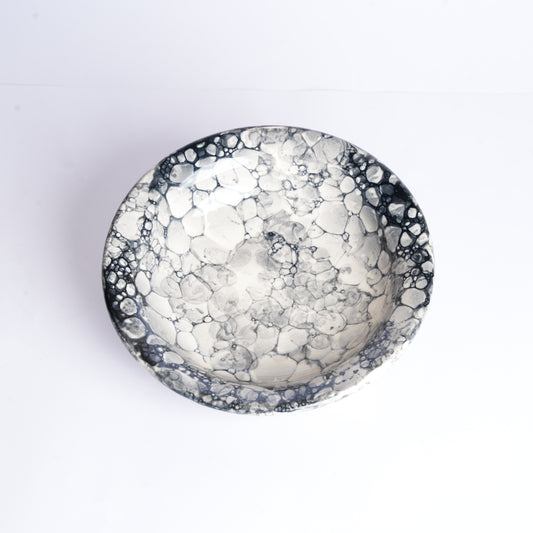 Caffeine Ceramic Handmade Stoneware white Marble Matte blue patti Soup Plate/Pasta Plate/Maggie Plate/Macaroni Plate 9" (Set of 2 Dishwasher & Microwave Safe)