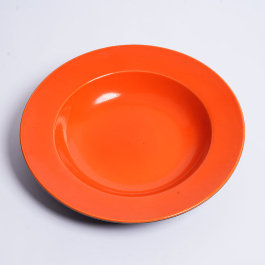 Caffeine Ceramic Handmade Stoneware Orange Round Soup Plate/Maggie Plate/Pasta Plate/Macaroni Plate 9" (Set of 2 Dishwasher & Microwave Safe)
