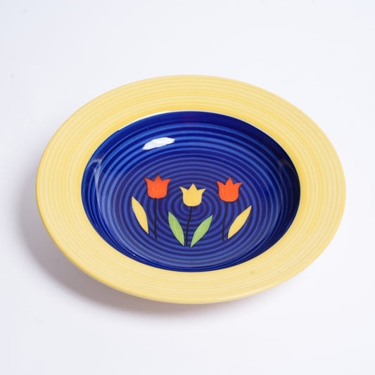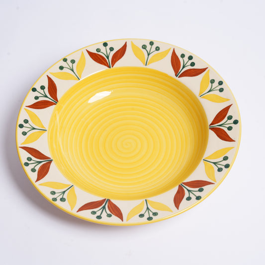 Caffeine Ceramic Handmade Stoneware Yellow Tulip Soup Plates/Pasta Plates/Maggi Plates/Macaroni Plate 9 inch (Set of 2 Dishwasher & Microwave Safe)