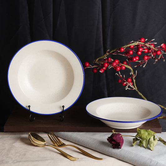 Caffeine Ceramic Handmade Stoneware Blue Asmiya Soup Plates/Maggie Plate/Pasta Plate/Macaroni Plate 9" (Set of 2 Dishwasher & Microwave Safe)