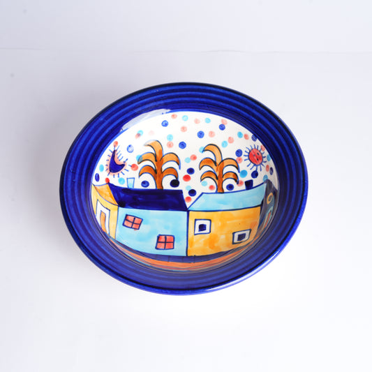 Caffeine Ceramic Handmade Stoneware Blue Umrao 9 inch Soup Plate/Pasta Plate/Maggie Plate/Macaroni Plate(Set of 2 Microwave & Dishwasher Safe)