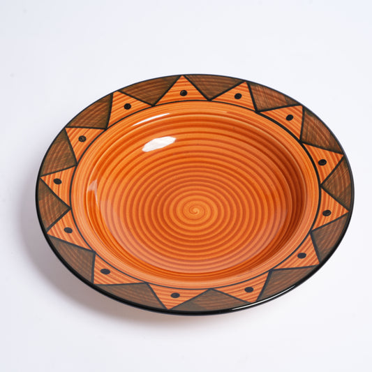 Caffeine Ceramic Handmade Stoneware Orange Beige Soup Plate/Pasta Plate/Maggie Plate/Macaroni Plate 9" (Set of 2 Dishwasher & Microwave Safe)