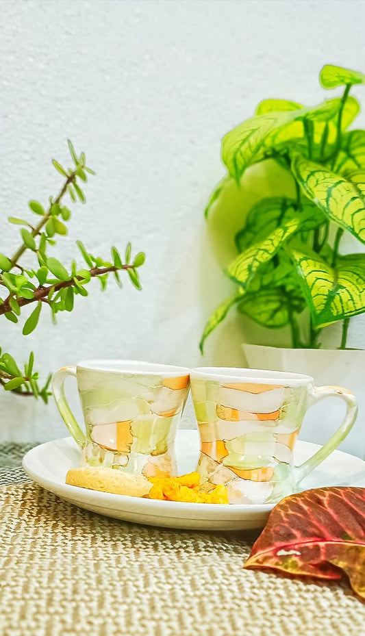 Caffeine Ceramic Handmade Green Cum Yellow Neon Bubble Tea Cup Set of 2