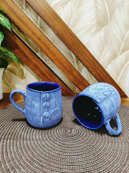 Caffeine Ceramic Handmade Blue Buttoned Tea Cup set of 2