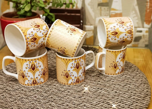 Caffeine Ceramic Handmade Yellow Gold Pattern Tea Cup Set Set of 2
