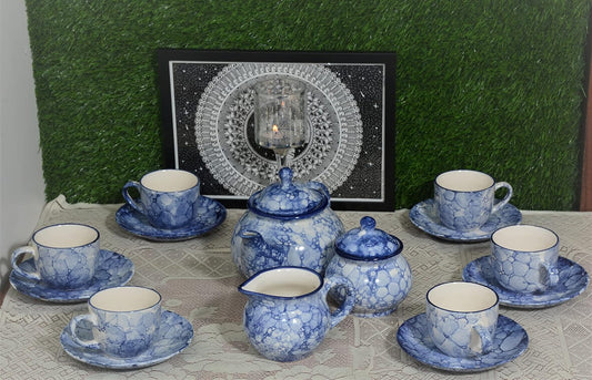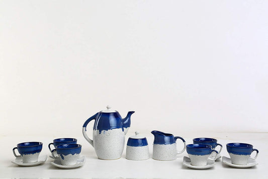 Caffeine Ceramic Handmade Stoneware Blue Boota Tea Set of 15 pcs