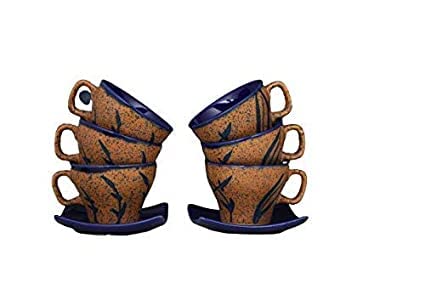 Caffeine Ceramic Handmade Stoneware Blue Flora Tea Set ( set of 15 pcs)