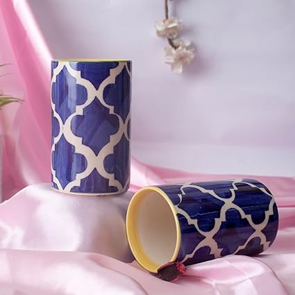 Caffeine Ceramic Stoneware Handmade Blue Mughal Water Glass (Set of 2)