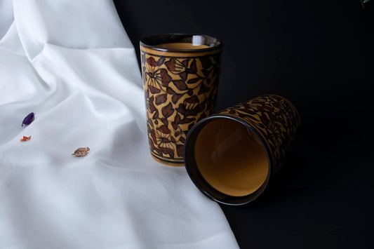 Caffeine Ceramic Handmade Brown Sehra Water Glass (300ml) Set of 2)