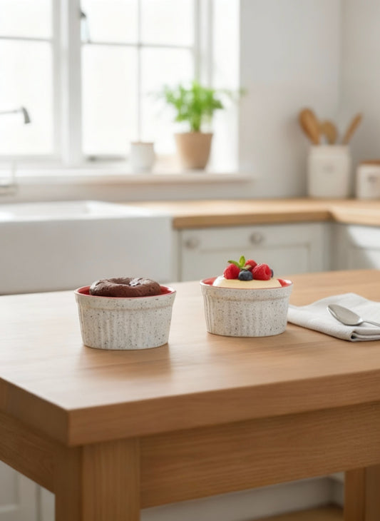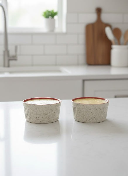 Caffeine Ceramic Handmade White and Red Ramekins Bowl (Set of 2)