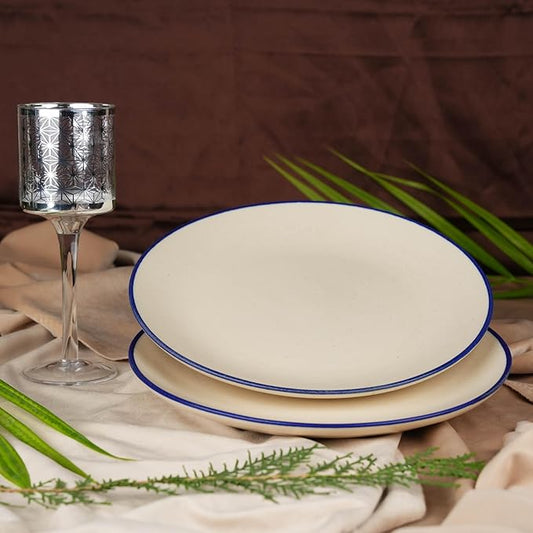 Caffeine Ceramic Handmade Stoneware White Matte blue patti quarter plate 7”(Set of 2)