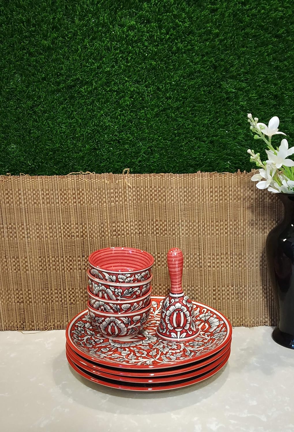 COMPONENTS: 4 Dinner Plates (10 inch), 4 Katori Bowl, 1 Dinner Bells