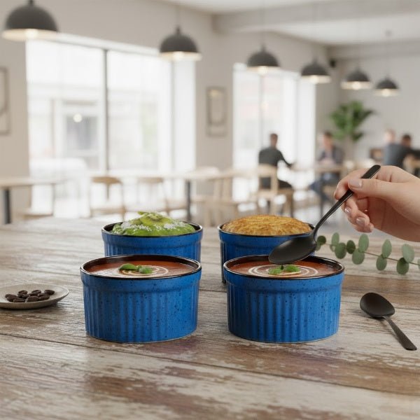 Those who love their food, love their kitchen will definitely love this modern approach to pudding and ramekins bowls. Serve your guests in this after meal and get the sparkling appreciation for your fine hospitality. Tip to bottom is 100% handmade with fine details. Ramekins bowls used for pudding, custards, sweets, brownies, etc.