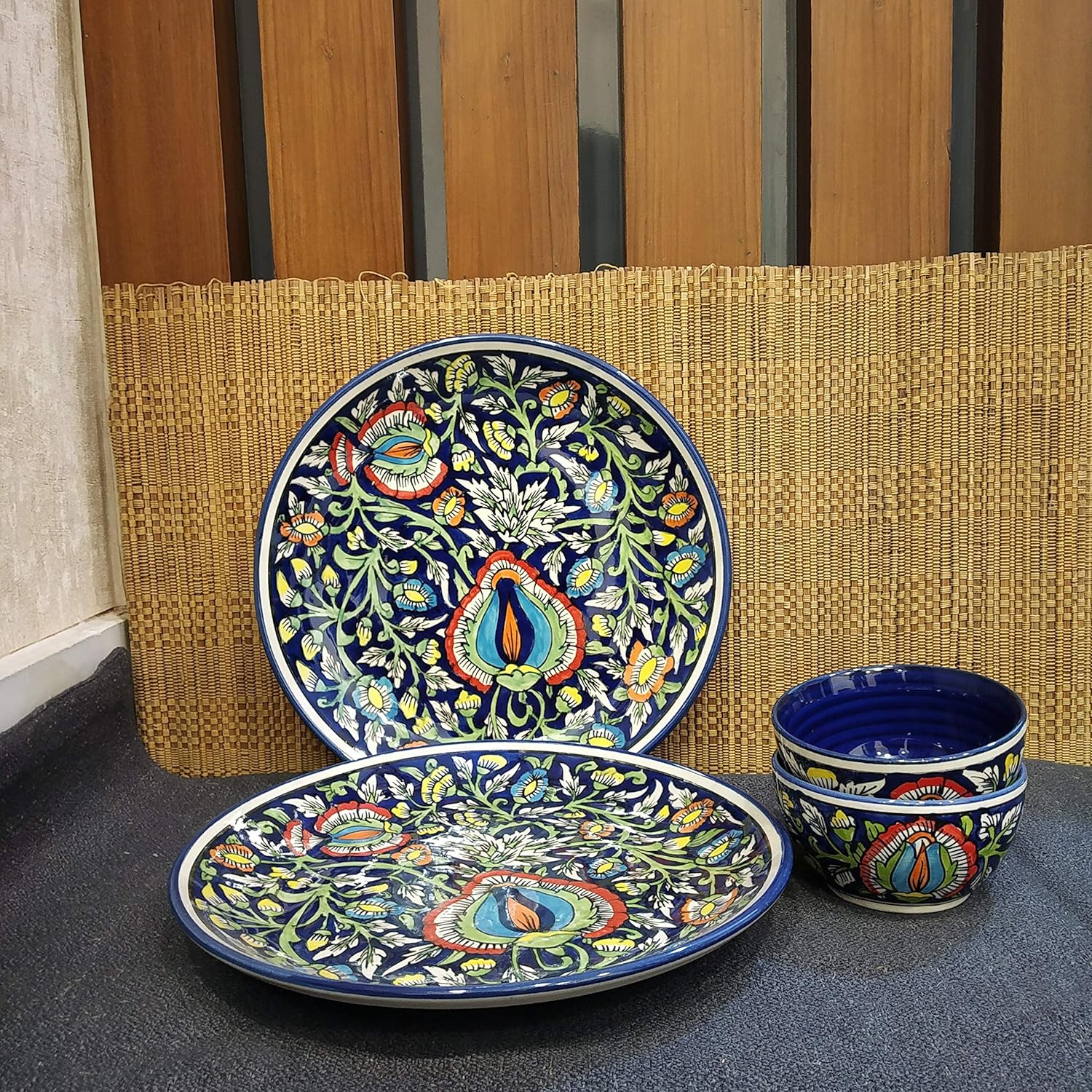 Caffeine Ceramic Handmade Blue Jaipuri Combo Dinner Set (4 pcs.)