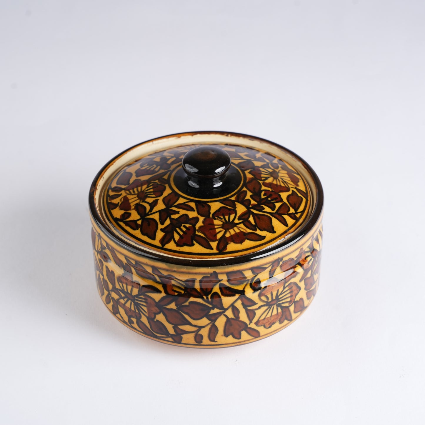 Caffeine Ceramic Handmade Serving Casserole with lid. Note: Set of 3. These Servings heritagely called Dongas are superiorly preferable for Indian big dinner times either vegetables, rice dishes, or sizzlers, this'll serve your purpose. The glossy texture on the casseroles is all handwork. All colors and glazes used on our dinnerware are food-safe and protected by eco-glaze.
