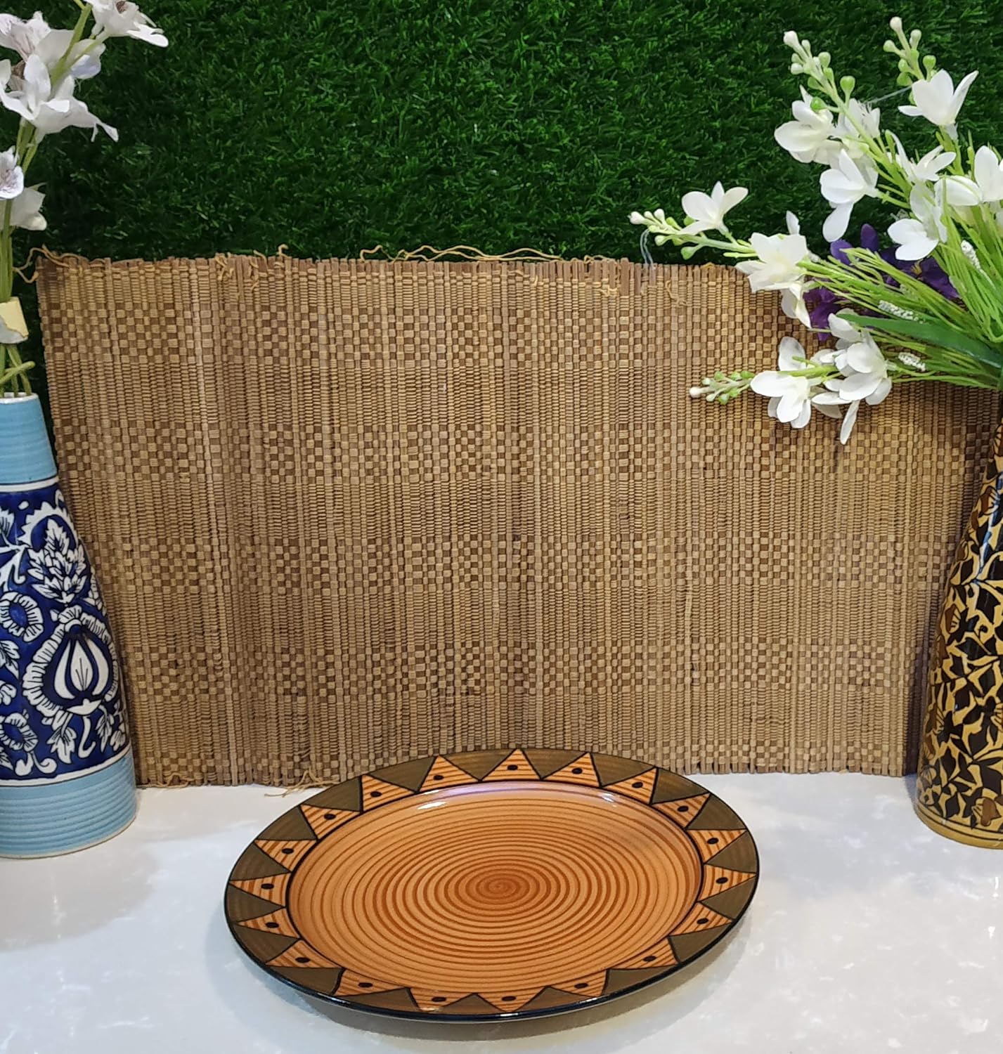 Caffeine Ceramic Handmade Brown Soorya Combo Dinner Set (12 pcs.)
